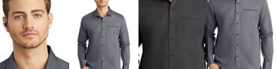 For those who prefer a slim (but not tight) fit that sits closer to the body. Thoroughly updated, this crisp nailhead shirt has a silky feel and a wrinkle-resistant finish for exceptional non-iron performance. 4-ounce, 60/40 cotton/polyester with pucker-free taped seams and RH engraved buttons to elevate the office-ready look. Open collar with removable stays. Mitered adjustable cuffs.
